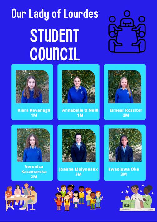 In September each class votes for a student to represent them on the council for the coming year. Training is provided in order to equip the student council members with the skills required to take an active part in the council.